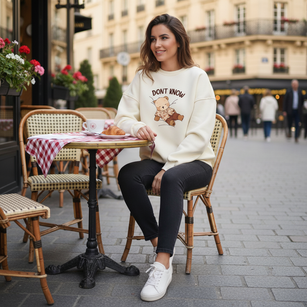 “bilmiyorum ama çok tatlıyım” tavrını yansıtan sevimli ayıcık tasarımıyla dolabının en eğlenceli parçası olmaya aday. Oversize kesimi sayesinde hem rahat hem de cool bir görünüm verir.