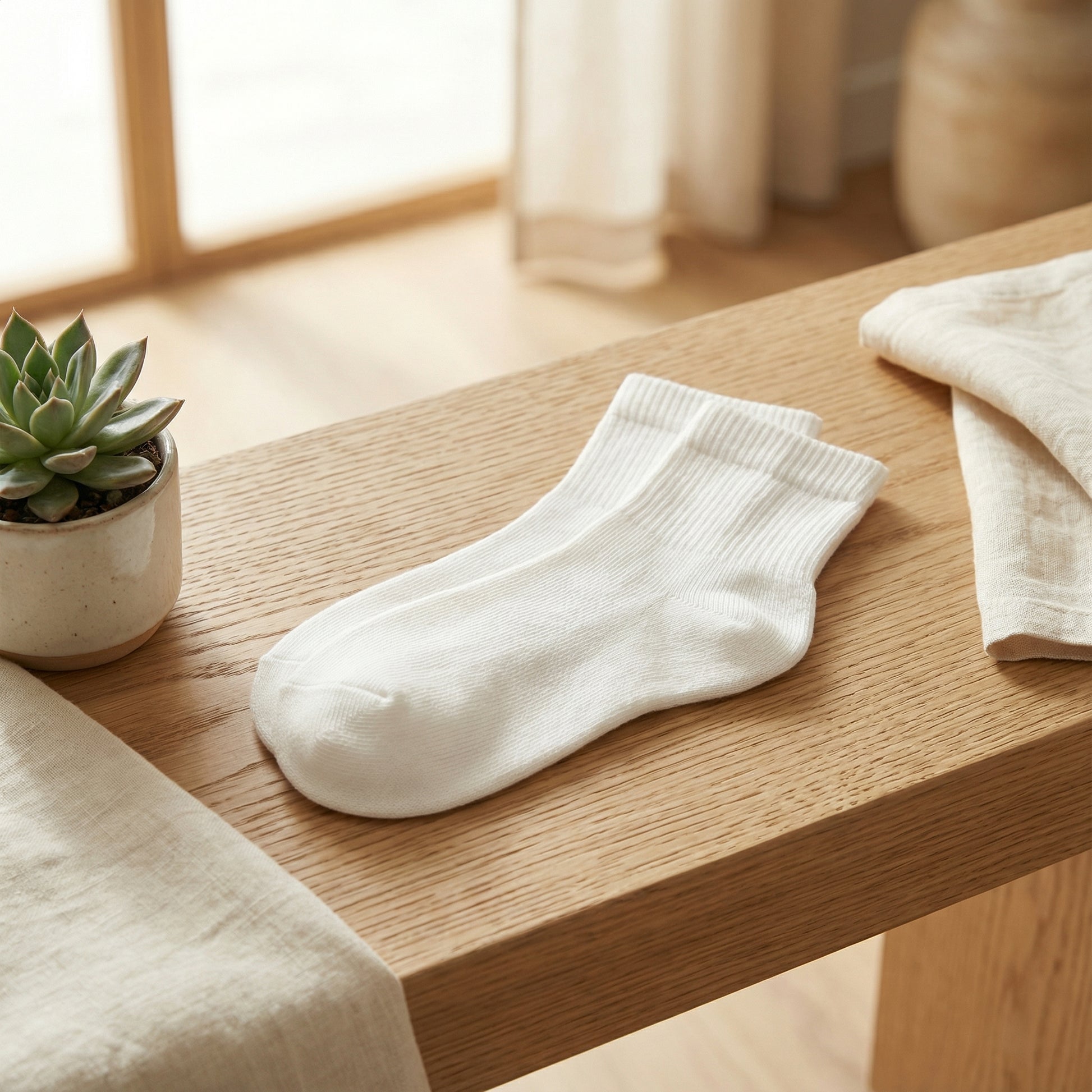 Yumuşacık dokusu ve nefes alabilir yapısıyla gün boyu konfor sunan beyaz pamuk çorap. Günlük kullanım, spor veya ev rahatlığı için ideal şekilde tasarlanmıştır. Esnek bilek kısmı sayesinde kaymaz ve ayağınıza nazikçe oturur.